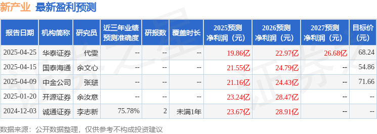 最新盈利预测明细如下: